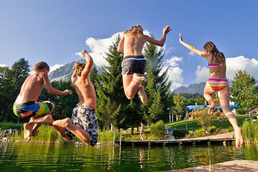 Ob Bergsee, Klamm oder Freibad – rund um den Wilden Kaiser gibt es an heißen Tagen viele Wege zur Erfrischung.