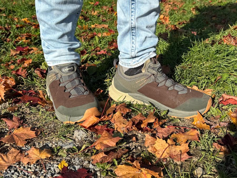 Aktuell dürfen wir den AKU Omnia V-Light GTX in der Farbe braun-grün testen. Lies hier sowohl über das Produkt als auch unseren ersten Eindruck zum Schuh.