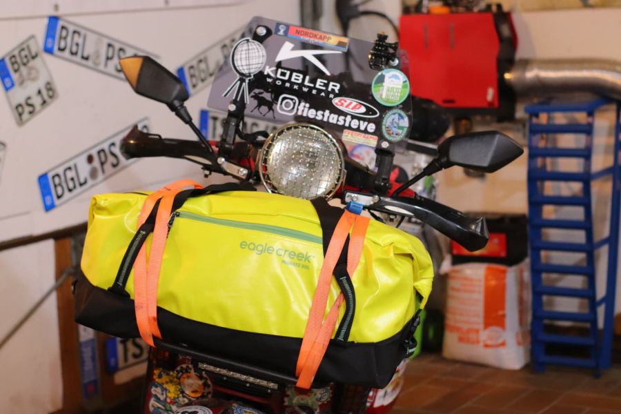 Mit ihren 60 Litern Volumen bietet sie ausreichend Platz für mehrtägige Touren, bleibt aber handlich genug, um bei uns auf dem Roller verstaut zu werden. Die robusten Reißverschlüsse und das verstärkte Bodenmaterial machen sie zum verlässlichen Begleiter – genau das Richtige für ein Abenteuer am nördlichen Polarkreis.