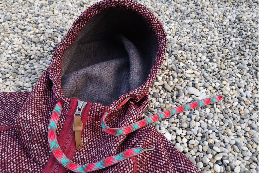 Was auf den ersten Blick auffällt, ist das interessante Muster; auf dem Bild wirkt es wie meliert. Meinen Sohn erinnerte es sofort an Schlangenhaut und Animal-Prints, die sind ja gerade sehr angesagt. Umso besser, damit liegt der Hoodie also voll im Trend. Dazu sind die bunten Kordeln ein absoluter Hingucker und verleihen der Jacke das gewisse Etwas. Ihr bekommt die Jacke in vier tollen Farben. Leider gibt Schöffel nur Farbnummern an, daher versuche ich mal die Farben ein wenig zu beschreiben.