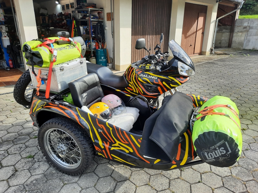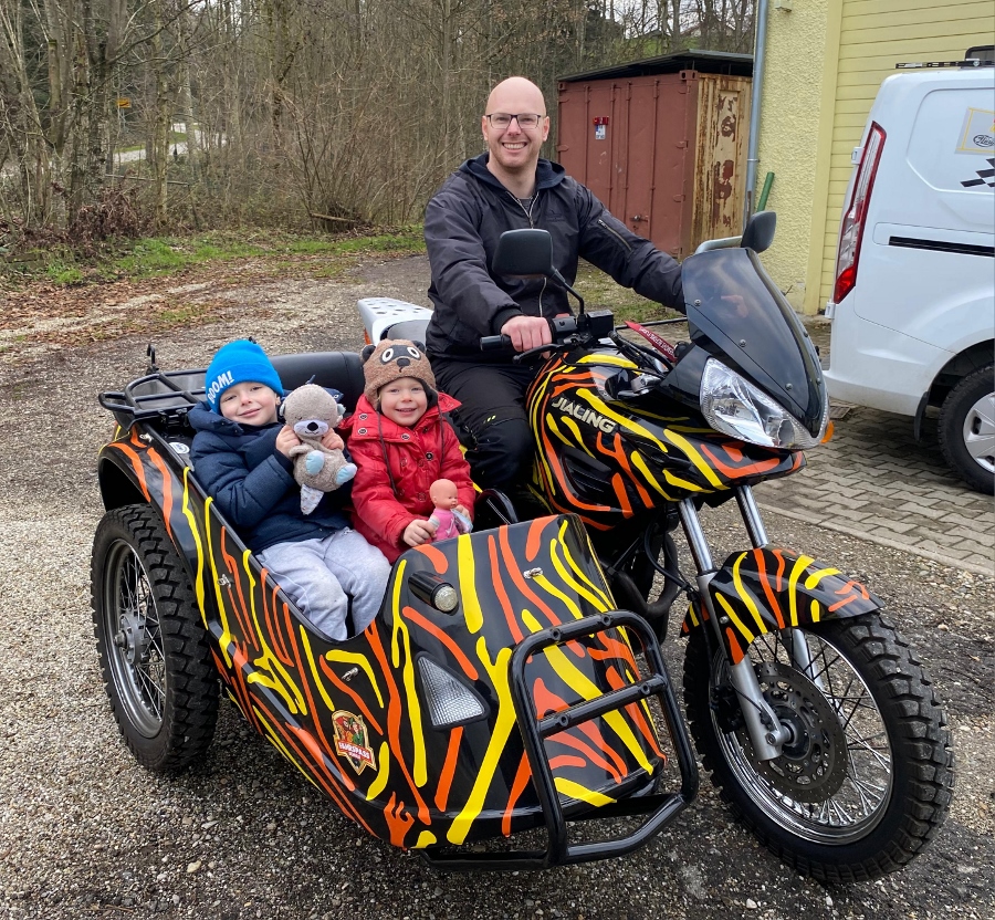 Wir, zwei Erwachsene und zwei kleine Kinder 4 & 5 Jahre alt, stehen am Beginn eines besonderen Abenteuers: Mit dem Motorradgespann geht es von Fridolfing los, über und durch die Alpen – bis nach Italien. Da uns das gemütliche Beisammensein wichtiger ist als viel Platz, haben wir uns für das Aurora Ridge 3-Personen-Zelt von NEMO Equipment entschieden.