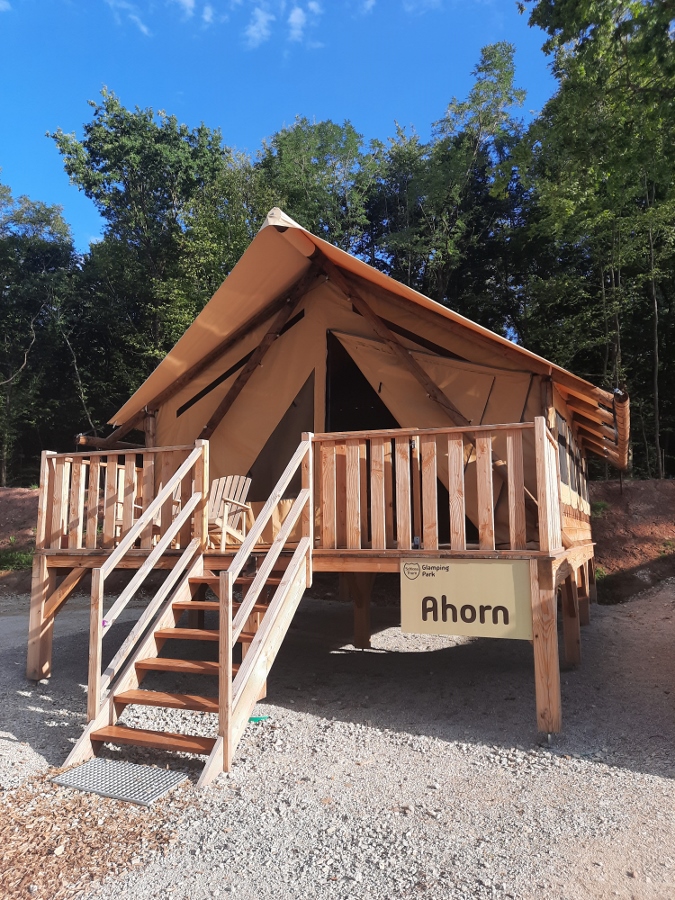 Als Special wurde ein eigener Eingang in den Erlebnispark Schloss Thurn mit in den Glamping Park integriert und somit gibt es ab 18.00 Uhr Abends exklusive Eintrittsmöglichkeiten in die Westernstadt vom Erlebnispark, um dort die Gastronomie und das Cowboy- und Indianer Flair im Saloon genießen zu können. Von uns gibt es hierfür ein ganz starkes Daumen hoch!