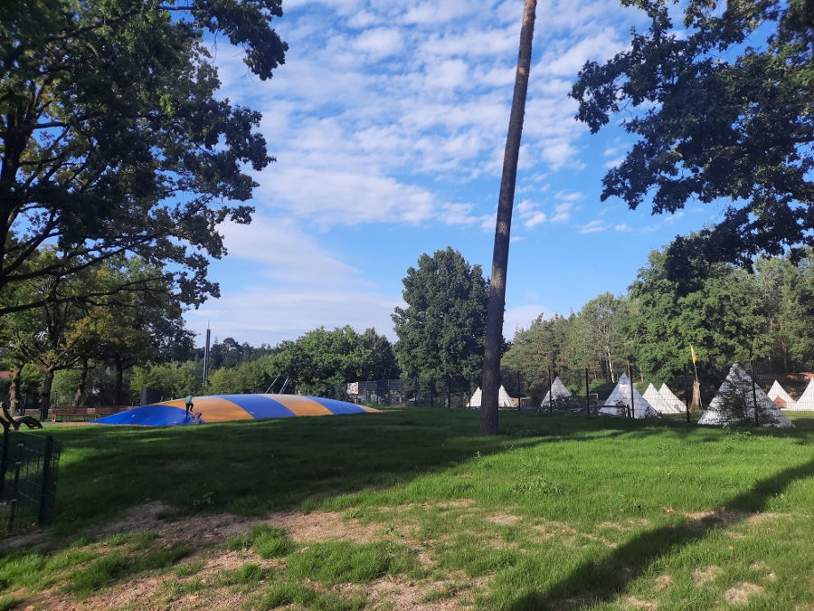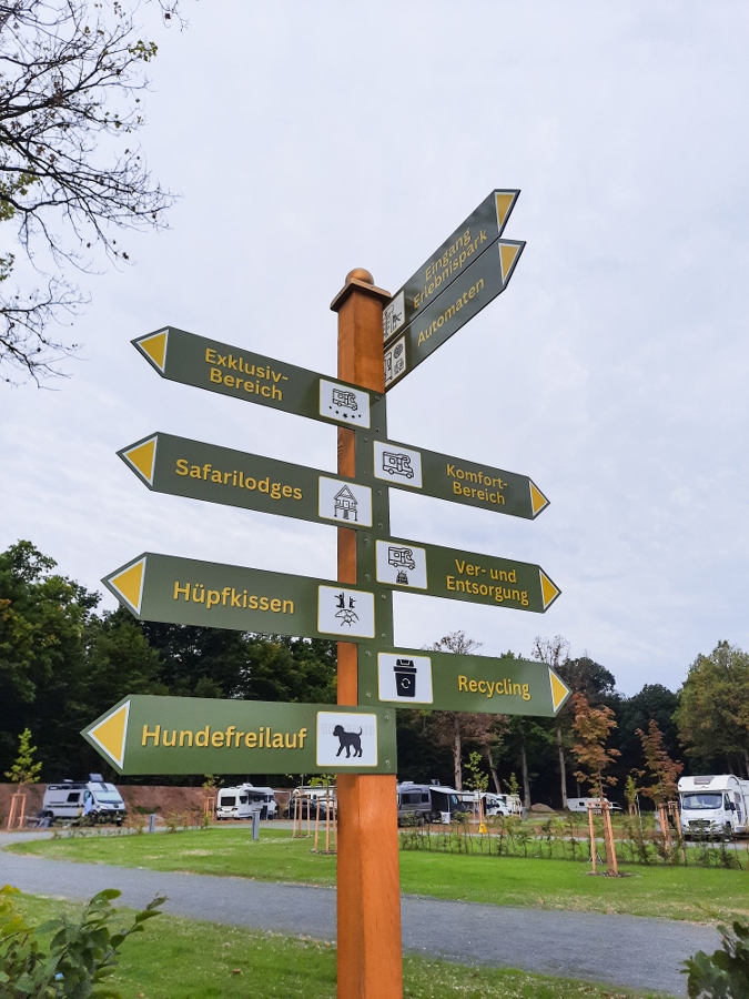 Für die Kleinen gibts im Glamping Park als Zuckerl am Spielplatz noch ein riesiges Hüpfkissen zum Toben und an den Sanitärhäuschen kleine Zwergenhäuschen, die mit lustigen Sprüchen den Gang zur Dusche oder den Abwasch versüßen und die Besucher belustigen.