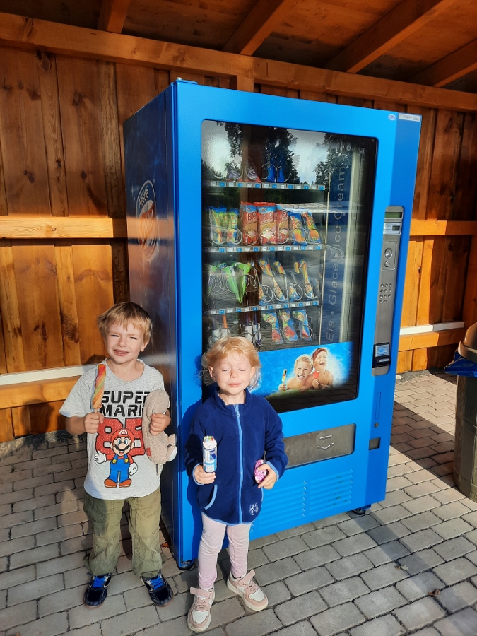 Zum prfekten Start in den Tag kann man am Vortag frisches Gebäck bestellen, dass man dann pünktlich 9.00 Uhr in der Früh direkt an der Rezeption abholen kann. Zusätzlichen stehen aber auch diverse Automaten 24 Stunden zur Verfügung, um die Gäste mit Getränken, Spießen und Eis zu versorgen. Da kann das Frühstück auch mal Eiskalt ausfallen zur Freude von Groß und Klein 😉