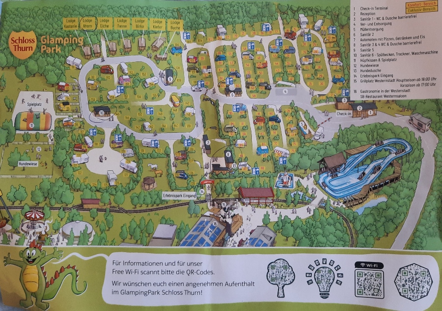 Kennt ihr den Begriff Glamping? Es bedeutet Glamorous Camping, also Camping mit Stil und hohem Comfort. Wir, als jahrelange Camping und Outdoor Fans durften den Glamping Park Schloss Thurn für Euch testen. Der kürzlich erst neueröffnete Glamping Park Schloss Thurn liegt direkt am Erlebnispark Schloss Thurn, unweit von 91336 Heroldsbach, der sogar einen eigenen VIP Zugang für den Erlebniss Park Schloss Thurn hat. Ausgestattet mit modernster Technik und liebevoll angelegten Plätzen bietet der Glamping Park Schloss Thurn über 160 Stellplätze in verschiedenen Größen und Bereichen, eine Hundewiese, Hundedusche, Spielplatz, barrierefreie Sanitäreinrichtungen, Grillplatz und alles was einen erstklassigen Camping Platz ausmacht. Alles brandneu und top gepflegt. On Top gibt es eingezäunte Stellplätze um den besten Freund des Menschen frei neben dem Camper laufen lassen zu können. Die Kinder lassen sich so auch kurz mal sicherstellen 😉