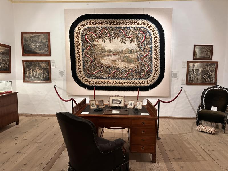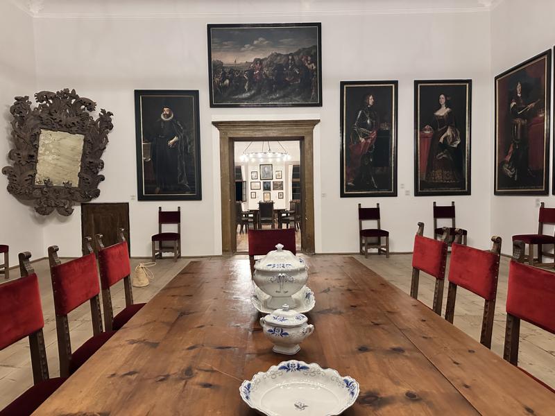 Im Inneren öffnen sich prunkvolle Räume, deren Einrichtung oft das 19. Jahrhundert kaum verlassen hat: ein Renaissance-Rittersaal mit Kachelofen, Möbelstücke von damals, Porträts historischer Persönlichkeiten, eine einzigartige Andreas-Hofer-Sammlung, Gemälde bekannter Tiroler Künstler, Waffen aus sechs Jahrhunderten und Alltagsgegenstände – als hätte der Adel sie eben erst liegen lassen.
