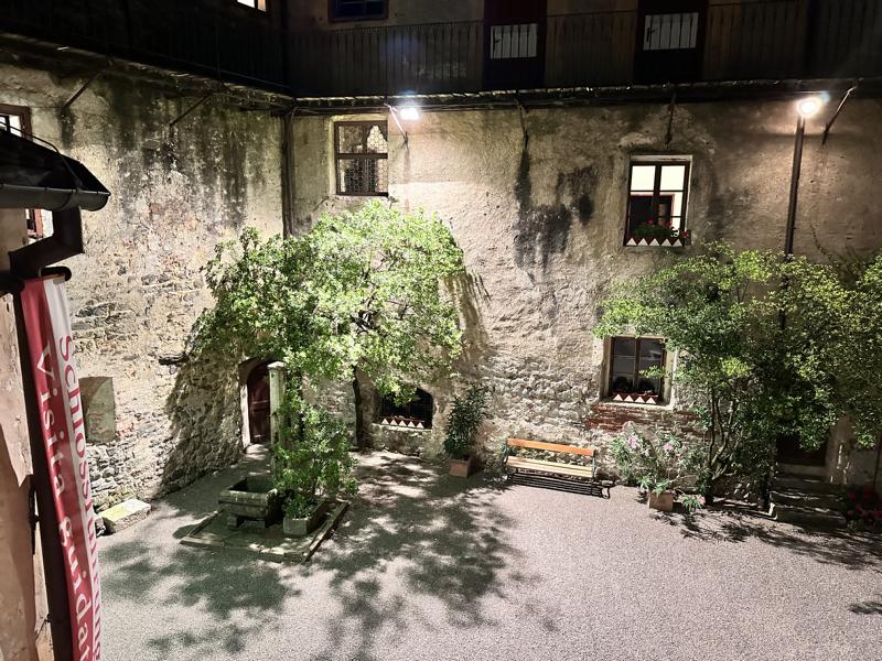 Wenn du den schmalen Weg unter Apfelbäumen und Weinreben hinauf steigend durch das Dorf Schenna schlenderst, spürst du den Puls vergangener Zeiten. Dann erhebt sich plötzlich die Silhouette des Schlosses Schenna, stolz und fest, auf dem Hügel thronend – ein lebendiger Zeuge der Jahrhunderte. Die Brücke über den alten Burggraben führt dich hinein, vorbei am Burgverlies, hinein in den Innenhof, wo Geschichte dich einlädt, sie zu berühren.