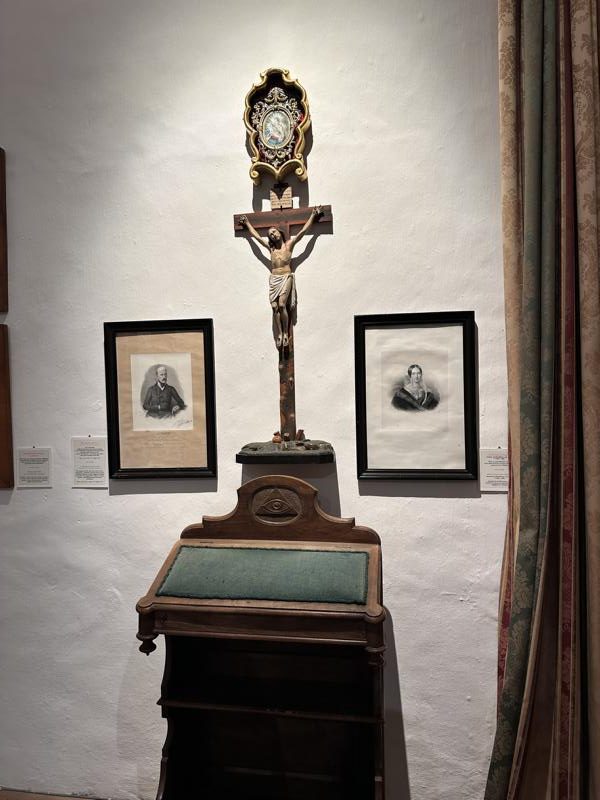 Nur wenige Schritte vom Schloss entfernt erhebt sich das neugotische Mausoleum, Errungenschaft der 1860er Jahre, prachtvoll aus rotem Sandstein. Hier fanden Erzherzog Johann, seine Frau Anna und weitere Nachkommen ihre letzte Ruhe – in einer kleinen Kapelle, die eher an eine Domgewölbe erinnert. Für sich genommen ein Architektur- und Kunstwerk, für dich als Besucher ein stiller Ort voller Kraft.