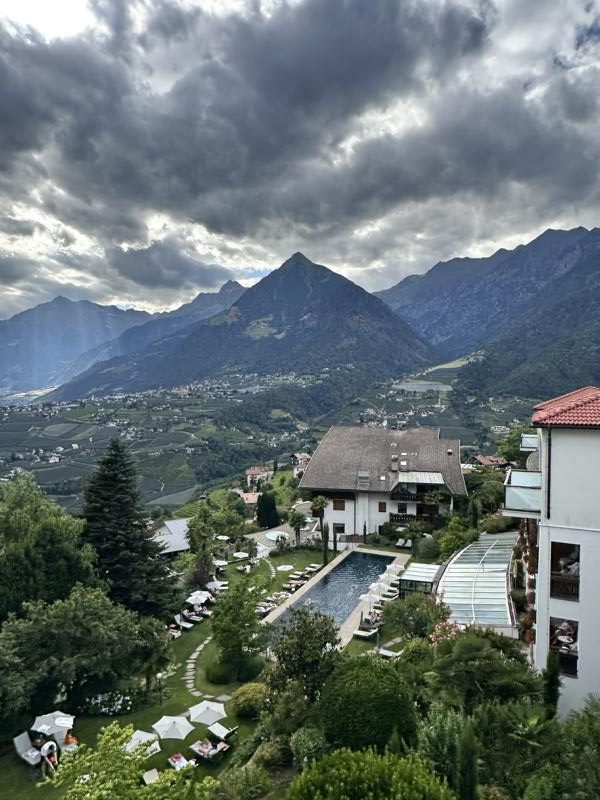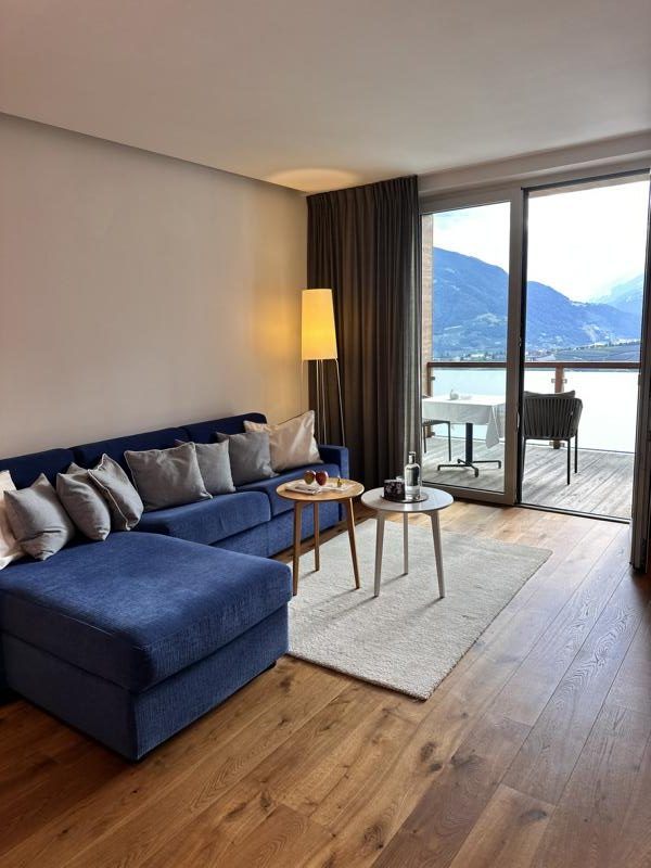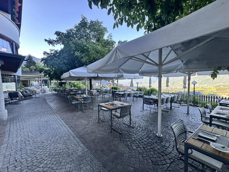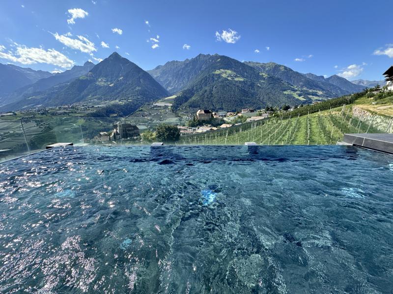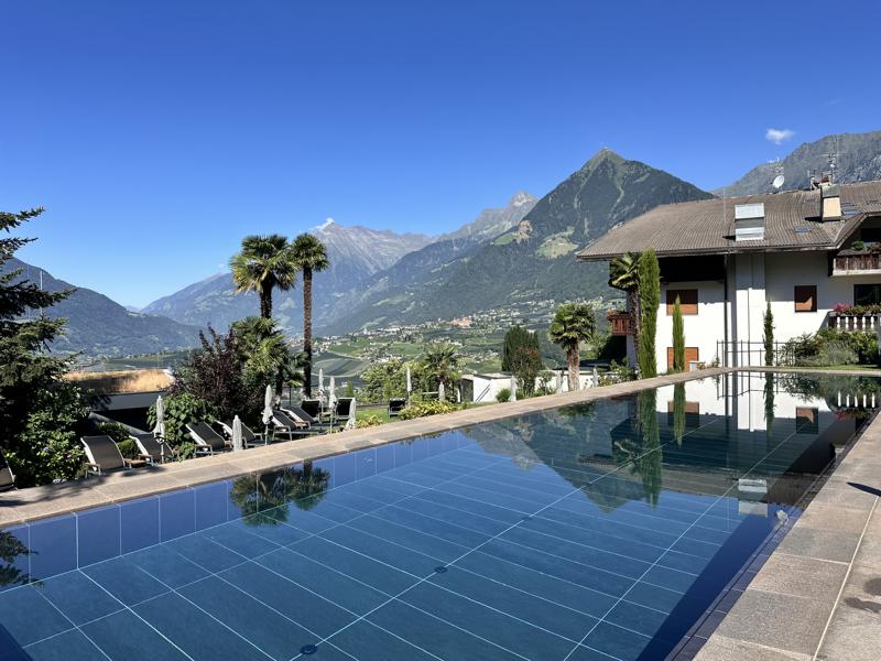 Hoch über Meran, rund 600 m über dem Tal, liegt dieses 4-Sterne-Superior-Haus wie ein Logenplatz zum Himmel.