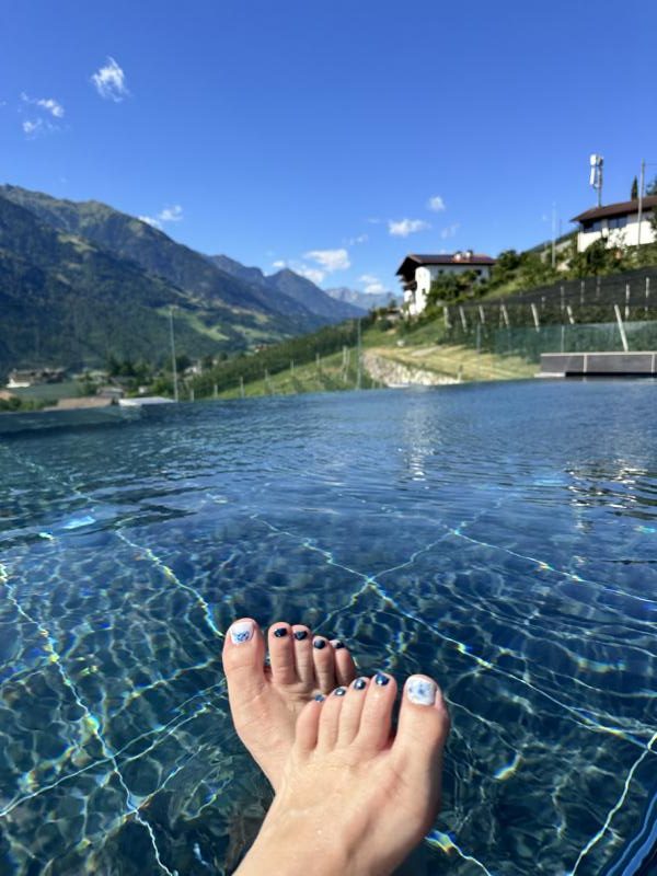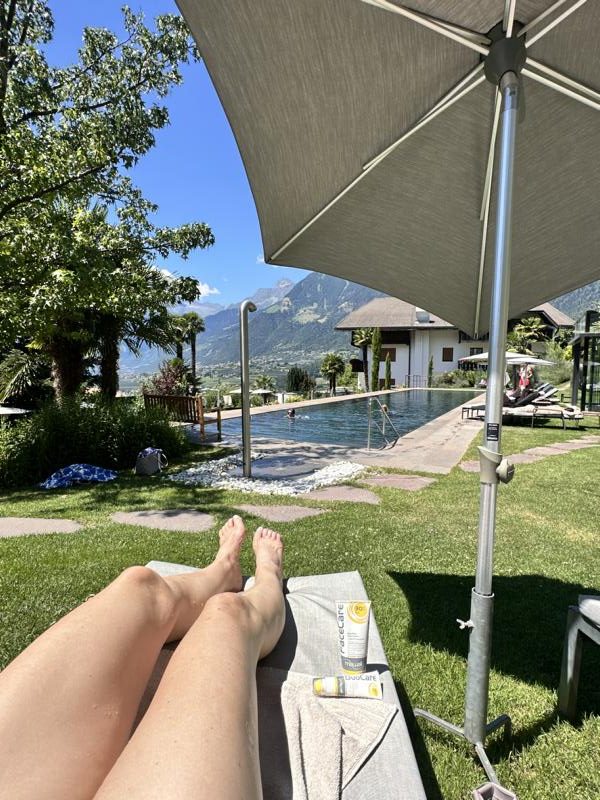 Auch Radfahrer und Golfer kommen voll auf ihre Kosten. Wer lieber in die Stadt eintaucht, erreicht Meran bequem zu Fuß, mit dem Shuttle oder Bus. Dort laden die Laubengassen, die Therme und charmante Cafés zum Verweilen ein. Ein Ausflug, der Kultur, Shopping und Dolce Vita verbindet. Wir durften nach einer ausgiebigen Shoppingrunde noch „Das Pfefferlechner“ kennenlernen.