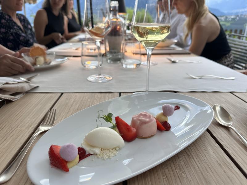 - Am Abend ein 5-Gänge-Menü, bei dem jeder Gang eine kleine Überraschung ist. Dazu die passende Begleitung aus dem über 400 Positionen umfassenden Weinkeller.