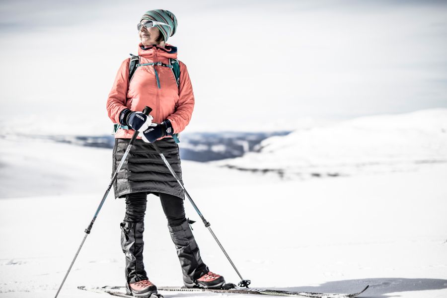 Mit seiner dezenten Kombination aus imprägniertem Ziegenleder und meliertem Dobby-Polyester zeigt er sich allerdings nicht nur funktionell, sondern auch äußerst stilsicher in skandinavisch schlichtem Design. Das Innenleben wird von der neuen G-Loft-Isolierung und einem herausnehmbaren Bemberg-Liner ausgefüllt und bietet damit hervorragende Wärmeeigenschaften und Tragekomfort. Es wurden somit feinste Materialien verwendet.
