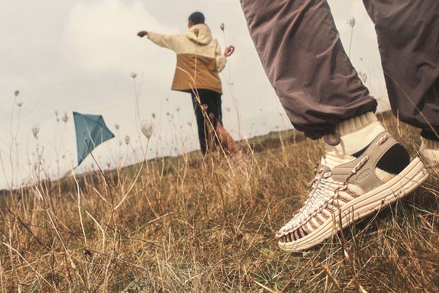 END. und KEEN präsentieren mit der “Kite” Uneek-Sandale ihre erste Zusammenarbeit und setzen damit ein Zeichen für Innovation. Das in Portland ansässige Unternehmen KEEN ist bekannt für seine technologisch fortschrittliche Konzeptions der Schuh-Designs. Im Jahr 2014 brachte die Marke die Hybrid-Sneaker-Sandale Uneek auf den Markt. Das unkonventionelle Design verkörpert die Hingabe der Marke an die Kreation kompromissloser Schuhe mit dem Schwerpunkt auf originellen und vielseitigen Silhouetten, welche die Freude an Outdoor-Erlebnissen feiern.