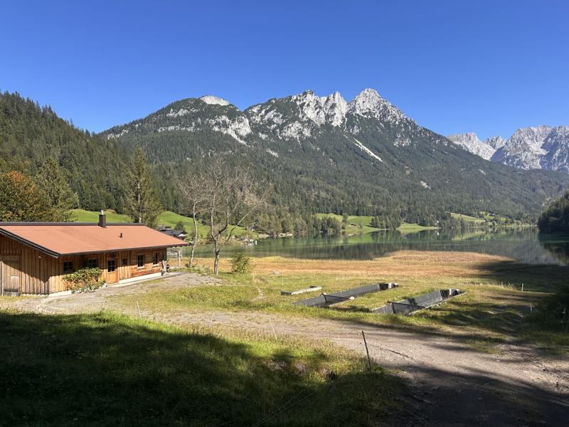 Angekommen am Hof Seespitz Hinterstein 69 fällt zuerst die Lage ins Auge: direkt an der Spitze des Hintersteiner Sees gelegen, umgeben von Wiesen, Wasser und Bergen. Die Ruhe ist beeindruckend, das Plätschern aus den Teichen kaum zu überhören.