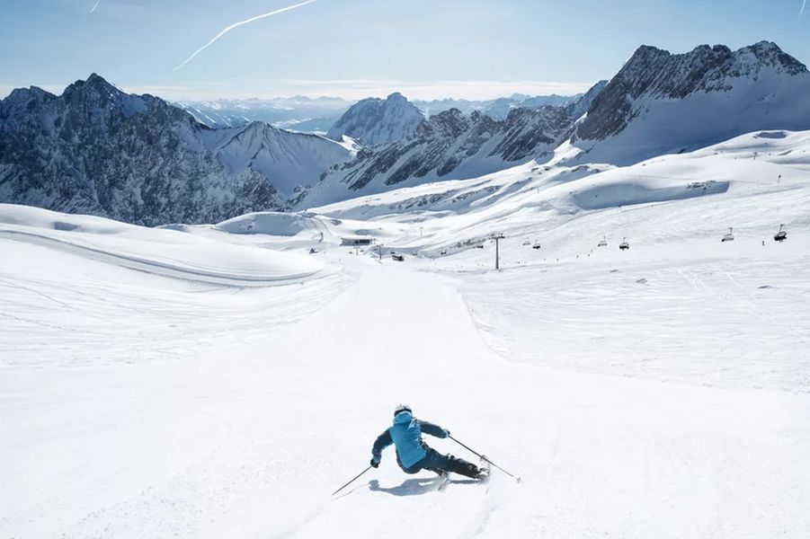 Auch Deutschland hat ein Gletscherskigebiet vorzuweisen. „Top of Wintersport“ heißt es auf der Zugspitze, wo die Wintersportler von Mitte November bis Anfang Mai 20 schneesichere Pistenkilometer und jede Menge Einkehrmöglichkeiten erwarten. Das Skigebiet liet auf dem 2.600m hohen Zugspitzblatt.