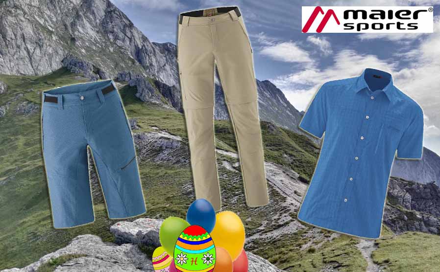 Auch in diesem Jahr haben wir wieder ein tolles Ostergewinnspiel für Euch vorbereitet. In einem davon verstecken sich die Maier Sports Norit Zip 2.0 Zip Hose in Größe 50, das Maier Sports Karo-Kurzarmhemd in Größe 54 und die Maier Sports Kerid Bermuda M in Größe 50. Bitte teilt uns bei Eurer Teilnahme unbedingt mit, welches Produkt Ihr gewinnen möchtet. Bitte denkt, daran dass wir nur die o.g. Größen verlosen!