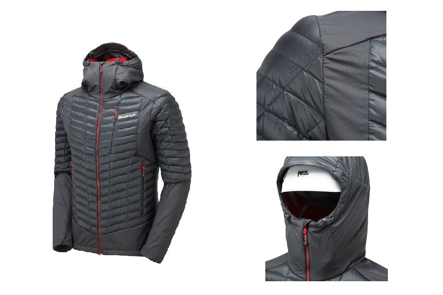 Bei der Quattro Fusion Jacke für Winter-Alpinisten, eine sogenannte „Technische Hybridjacke für das Gebirge“, setzt Montane auf eine einzigartige, innovative Hybridkonstruktion, die Zonen aus hochwertiger Gänsedaune mit Zonen aus dem neuen, innovativen synthetischen Polartec® Alpha® Direct vereint. Die Konstruktion basiert auf dem Body-Mapping-Prinzip: In allen auskühlenden Körperzonen wie dem vorderen Oberkörper und den Oberarmen, ist die Jacke mit RDS zertifizierter Daune gefüllt.