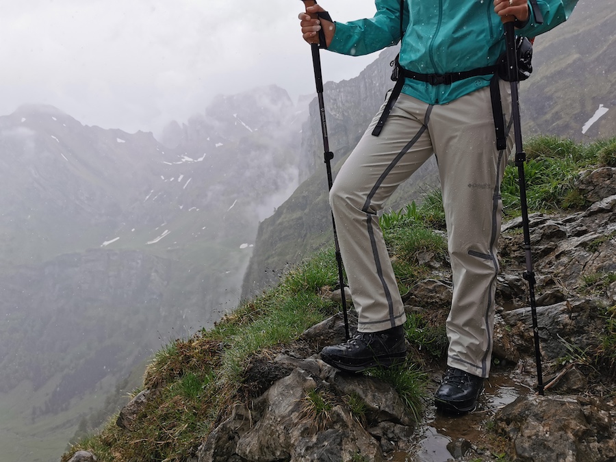 Die Columbia Wyldwood Wanderhose fällt locker aus, was bei einer Regenhose zentral ist. Persönlich schätzte ich das dehnbare und robuste Material, welches zugleich atmungsaktiv ist. So schwitzte ich mit der Regenhose nicht zusätzlich, auch nicht beim schweisstreibenden und anstrengenden Aufstieg zum Gipfel.
