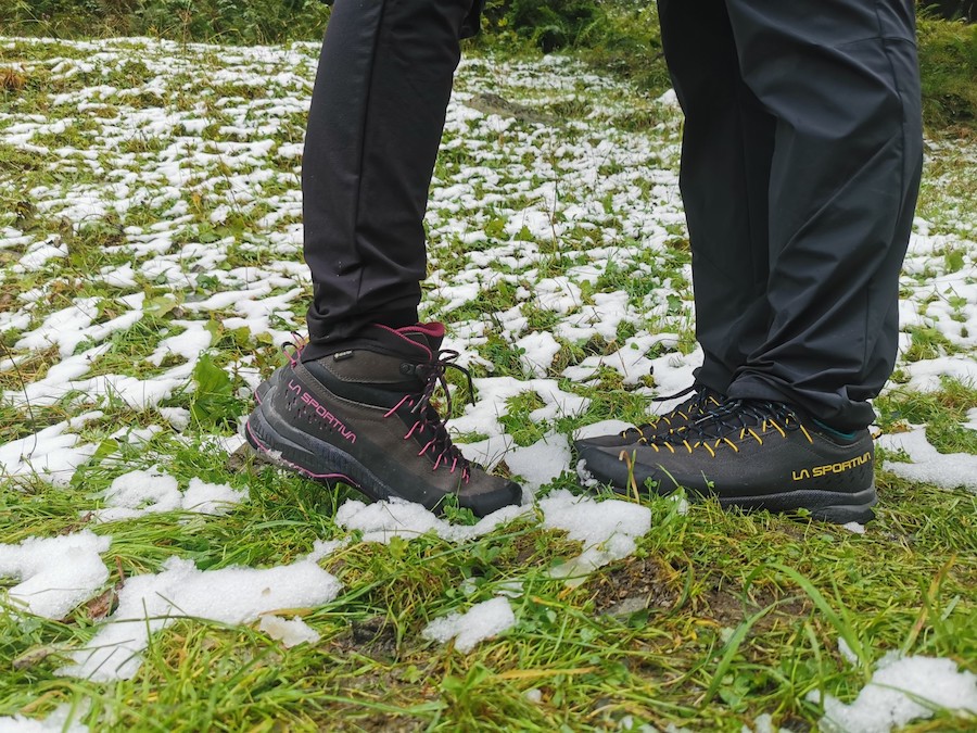 Den La Sportiva TX4 Evo GTX testeten wir in der Herrenausführung. Anhand des Grössenberaters auf der Homepage konnte die ideale Grösse ermittelt werden, welche bei der ersten Anprobe bereits sehr gut zu passen schien. Schon zu Beginn vermittelte er einen positiven Eindruck, welcher sich über die ganze Testphase noch verstärkte. Schon bei der ersten Anprobe war klar: dieser Schuh ist bequem. Auf dem Trail bzw. auch daneben bewies er stets guten Grip und optimalen Halt.