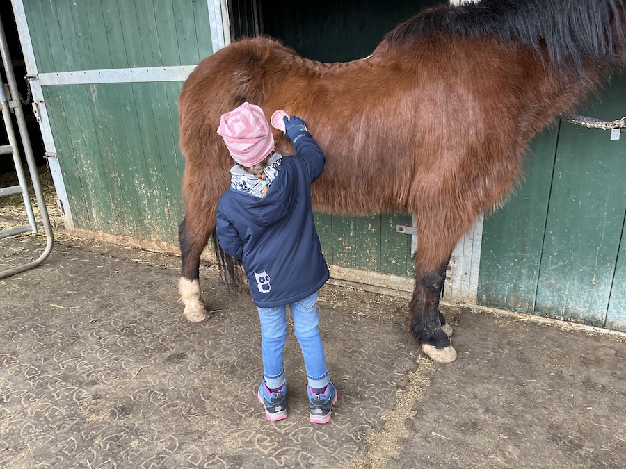 Bei sportlichen Aktivitäten wie Reiten und Radfahren trug die Nachwuchstesterin die Namuk Kolo Merino Handschuhe. Durch den großen Klettverschluss kann sie die Handschuhe leicht allein an- und ausziehen. Durch das weiche Material konnten die Finger auch in den Handschuhen gut zugreifen.