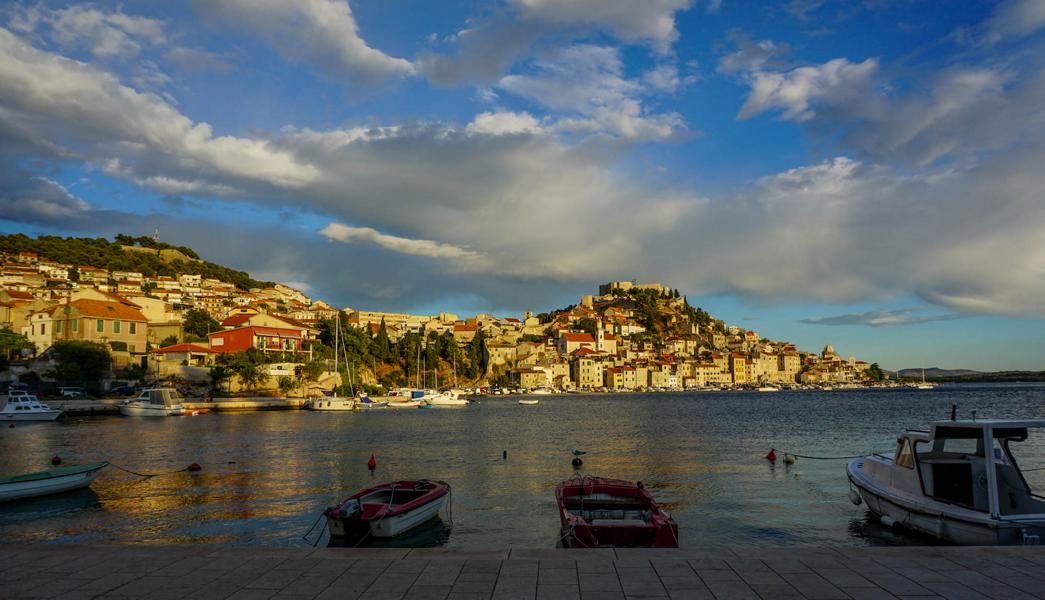 Šibenik ist eine wunderschöne dalmatinische Stadt, die mit ihrer prächtigen Architektur und pittoresken grünen Fenstern und Türen ihre Besucher bezaubert. Es handelt sich um eine Stadt mit sogar zwei Denkmälern, die auf der UNESCO-Liste stehen – die Kathedrale St. Jakob und die Festung St. Nikola.