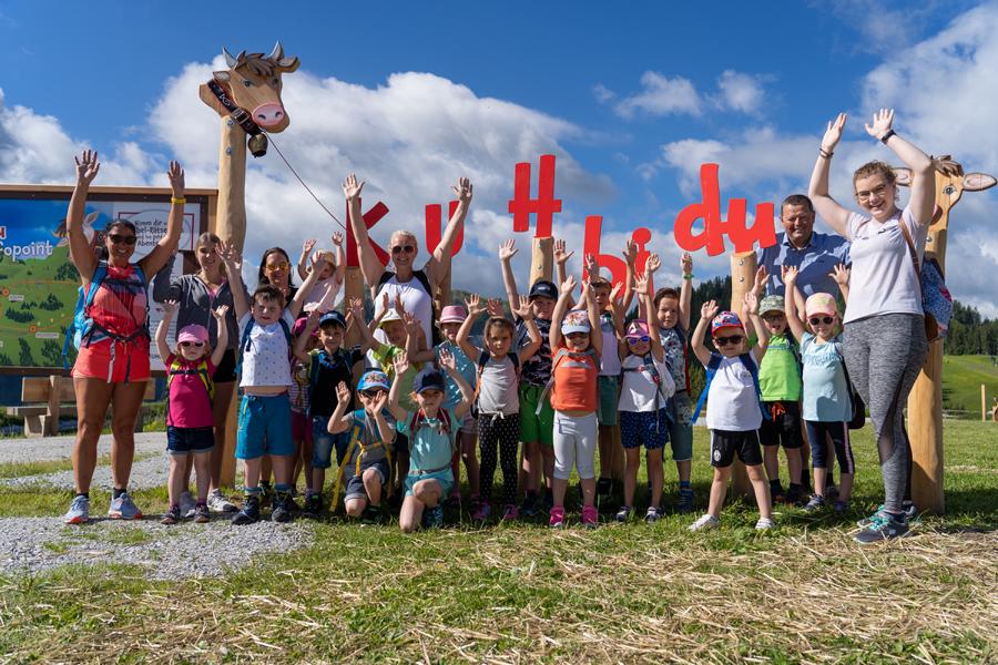 Der circa 1,5 Kilometer lange Weg startet unmittelbar bei der Bergstation der Grafenbergbahn und führt über insgesamt sieben Stationen. Den Einstieg bildet eine Kuhherde aus Holz, dort können sich die Kinder ihren Rätselpass abholen. An jeder weiteren Station bekommen die kleinen Besucher eine Aufgabe, die zu lösen ist. Eine überdimensional große Milchkanne, ein Bauernhof, eine Kuhtränke und weitere landwirtschaftlich relevante Stationen sind am KUHbidu Familienerlebnisweg zu erkunden. Der ausgefüllte Rätselpass ist an der Kassa der Talstation abzugeben, die Kinder erhalten dort als Belohnung eine kleine Überraschung. Der gesamte Rundweg ist mit Kinderwagen befahrbar und somit für Familien mit Kindern jeden Alters geeignet.