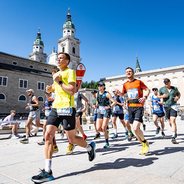 Der Marathon selbst ist das Herzstück der Veranstaltungswoche. Die klassische Distanz von 42,195 Kilometern führt durch die Stadt Salzburg und verbindet urbane Passagen mit ruhigen Abschnitten am Stadtrand.