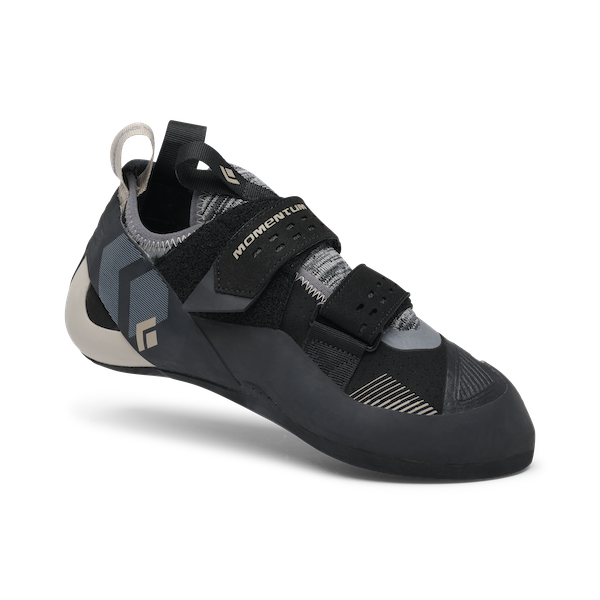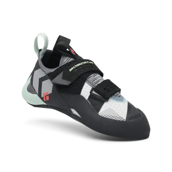 Der Momentum Velcro ist auf ganztägigen Komfort und Vielseitigkeit ausgelegt. Der neutrale, flache Leisten eignet sich für vertikale Klettereien, das Microsuede-Obermaterial passt sich an den Fuß an, ohne sich dauerhaft zu weiten. Die Engineered Knit-Zunge besteht aus recyceltem Material und sorgt für Atmungsaktivität. Zwei Klettverschlüsse erleichtern das Handling, während der BlackLabel-Gummi verbesserten Grip und Haltbarkeit liefert.