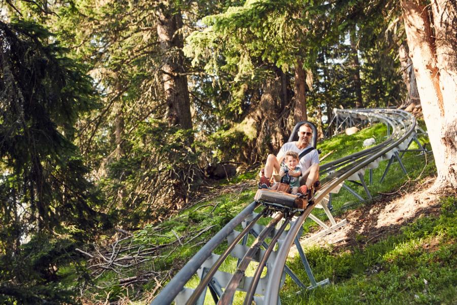 „Bitte anschnallen und Gas geben!“ heißt es beim Familien-Coaster-Schneisenfeger. Mit 40 Sachen sausen Klein und Groß vom Alpkopf oberhalb von Serfaus direkt bis zum Erlebnispark Hög.