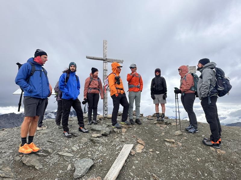 Vom Gipfel bietet sich ein Panorama auf den Stelvio-Pass und die umliegenden Gipfel wie den Ortler, und die Spuren der Front sind greifbar – ein intensiver Moment zwischen Natur und Geschichte.