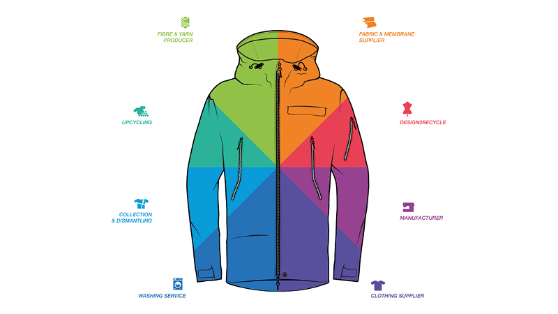 Erst in der vergangenen Woche hat die Europäische Industriepartnerschaft ihr neuestes Upcycling-Produkt – eine recycelte und recycelbare Funktionsjacke, welche die besten Möglichkeiten einer ökologischen und ökonomischen Wiederverwertung in sich vereint – auf der internationalen Arbeitsschutzmesse AplusA 2019 in Düsseldorf gemeinsam mit wear2wear Gründungspartner Schoeller Textil erstmals vorgestellt. Neben der recycelbaren Polyether/ester-Membran von Sympatex wurde bei den Auswahlkriterien der Zutaten (u.a. Kordel, Reißverschlüsse, Klettverschluss) ebenfalls Wert auf recycelte Polyester Materialien gelegt, um ein sortenreines Polyester-Produkt zu verarbeiten, welches am Ende seines Produktlebenszyklus wiederum problemlos dem Upcyclingprozess zugeführt werden kann.