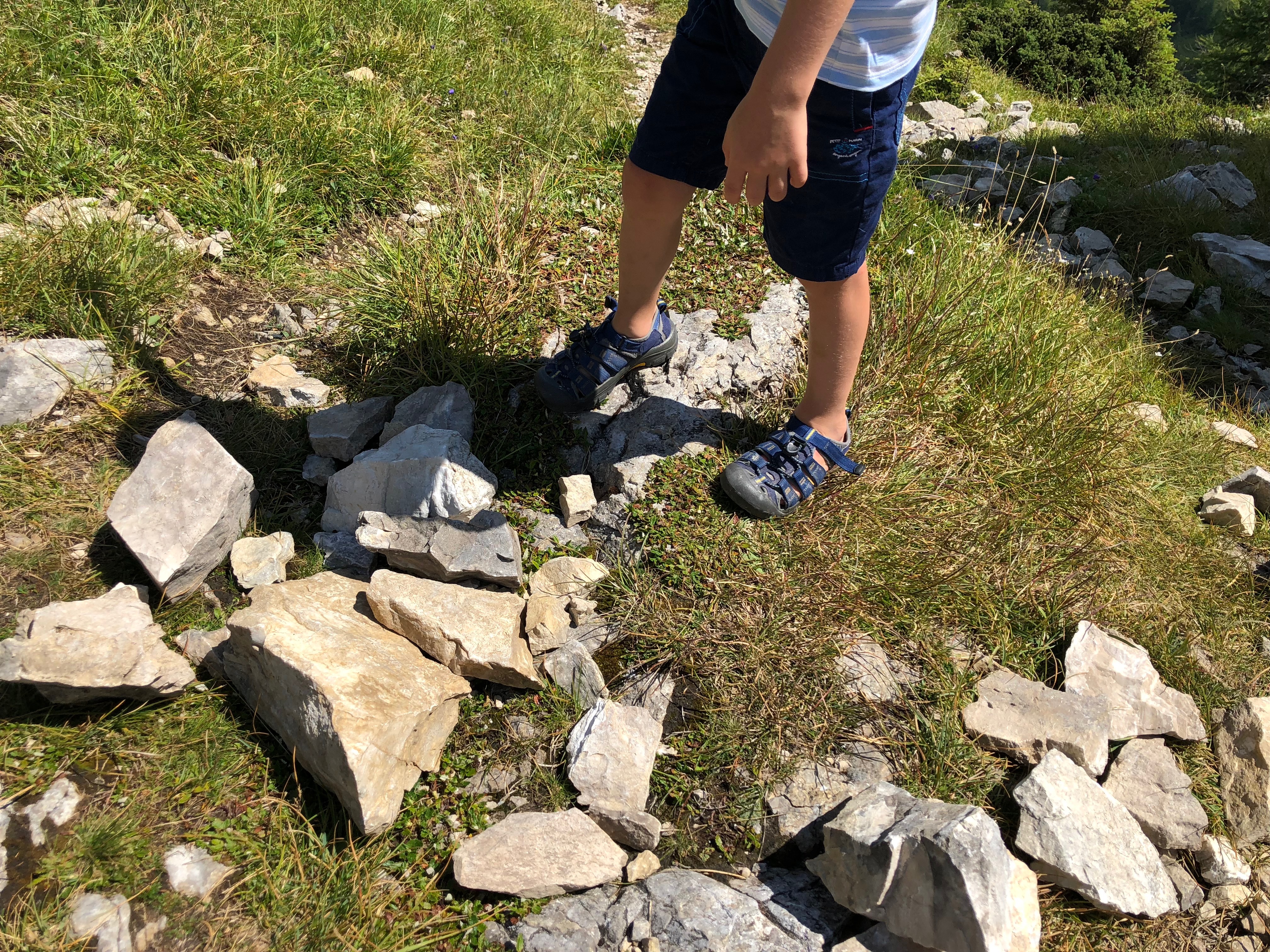 Die Keen Newport H2 Sandale macht auch bei Bergtouren einen guten Eindruck. Durch die Sohle mit gutem Profil hatte der Nachwuchstester immer guten Halt, auch, wenn er mal zwischen den Felsen entlang kletterte. Auch hier bewährte sich die Gummikappe an den Zehen.
